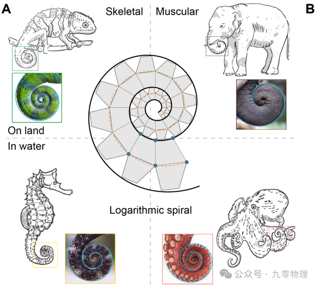 海马尾巴/变色龙尾巴肌肉按黄金角螺旋排列,确保抓握稳定且能耗最低,使应力分布均匀,实现结构强度与能量效率的最佳平衡。