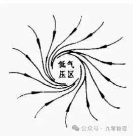 现在想象一片赤道附近的低压区(高温形成)。由于气压差形成的压力——气压梯度力,会推动周围气团(北半球)向低压区运动(如同你从盘缘走向中心)。这时候地球的自转,会使得这团气受到垂直前进方向向右的力,向右前方偏转,形成螺旋云带。