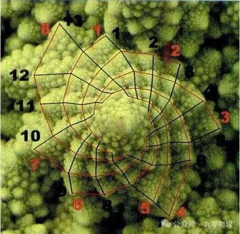 宝塔花菜以黄金角(137.5°)螺旋生长,实现最密堆积,使光合结构在有限空间内密度最大,达到植物空间利用率的理论最大值。·