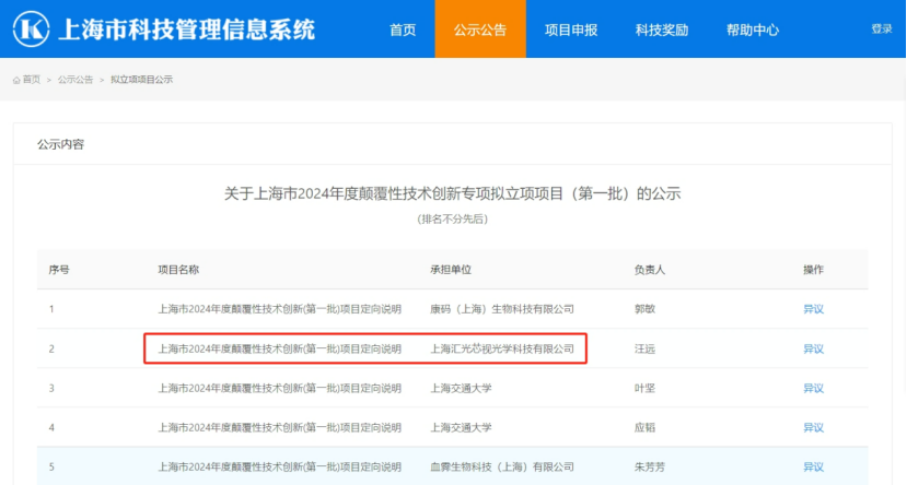 获得2024上海市颠覆性技术创新专项支持