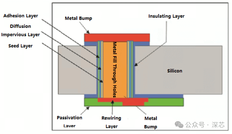 定义为连接硅片两侧并与硅衬底和其他通孔绝缘的电气互连结构。