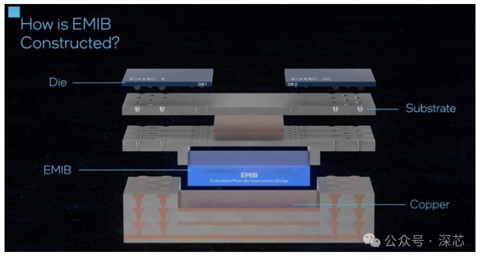 该概念与 2.5D 封装类似,但不同之处在于没有 TSV。因此,EMIB 技术具有标准封装良率、无需额外工艺和设计简单的优点。