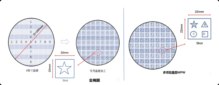 使用掩模版进行多次光刻、刻蚀、沉积等工艺,制造出晶圆。