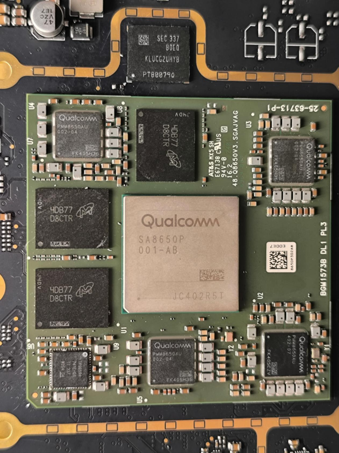 高通SA8650核心模组由主SoC芯片、电源管理芯片和存储芯片组成