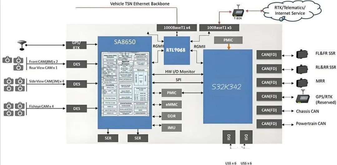 4.1、基于高通SA8650自动驾驶域控制器系统框图