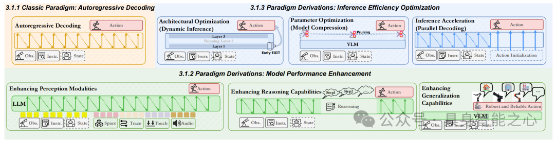 参数优化:模型压缩(BitVLA 用‘1-bit’权重、NORA 设计小参数模型);