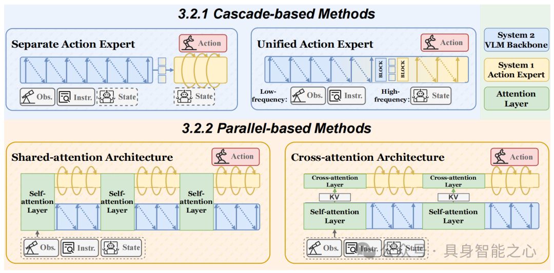 方法:System 2与System 1并行运行,通过共享注意力/交叉注意力交互信息。
