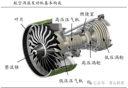 涡扇发动机为当前航空发动机市场的主流,由涡轮喷气发动机发展而成,在核心机基础增加了风扇和低压涡轮。由于涡轮风扇发动机总空气流量大排气速度低,所以与涡轮喷气发动机相比,推力大、推进效率高、耗油率低。