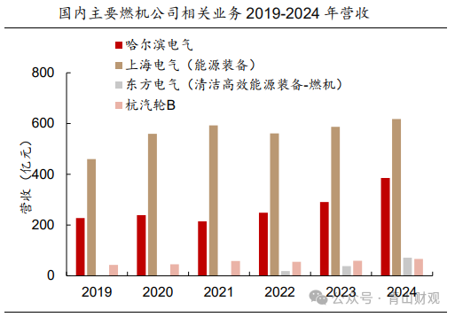 我国主要燃机公司为哈尔滨电气、上海电气、东方电气、杭汽轮等企业,疫情后2022-2024年各公司营收均已恢复,并受煤电和清洁能源行业回暖影响进入增长期。