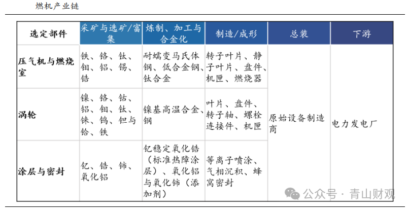 航空发动机产业链包括研发设计、原材料制备、零部件制造、分系统制造、整机装配、整机试验和维修保障等环节。