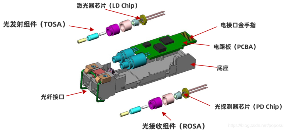 ROSA(光接收次模块):将探测器芯片、跨阻放大器等封装在一起,形成光接收组件。