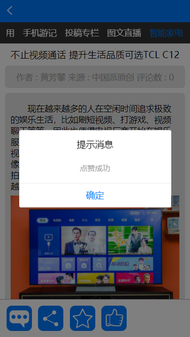 支持内容点赞、收藏、分享功能。