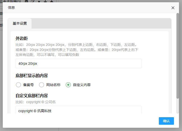 模块支持外边距和背景颜色字体大小等设置。