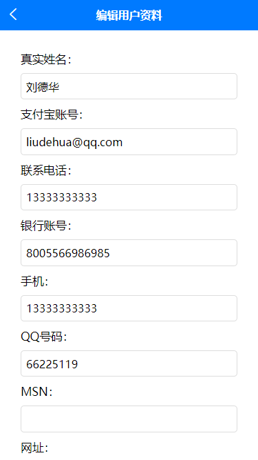 支持系统默认的用户资料字段。