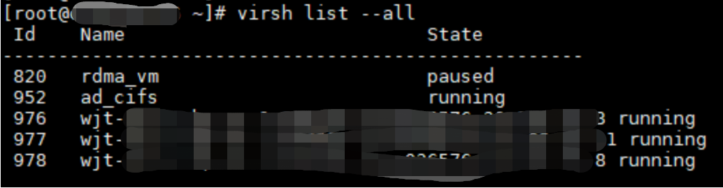 此命令连接到服务端192.168.2.102的libvirtd服务,执行命令 virsh list --all。