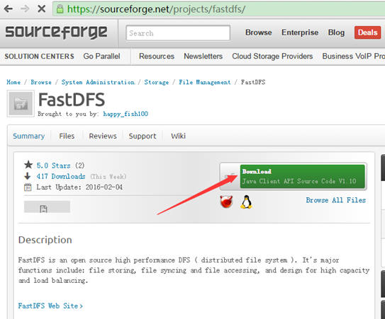 下载地址:http://sourceforge.net/projects/fastdfs/files/