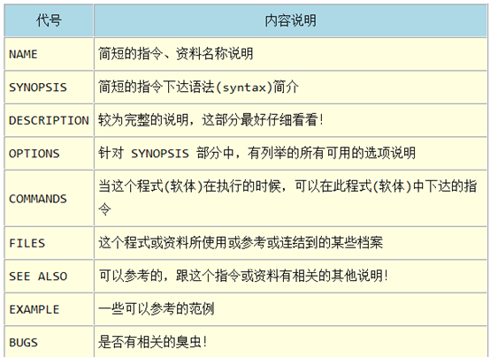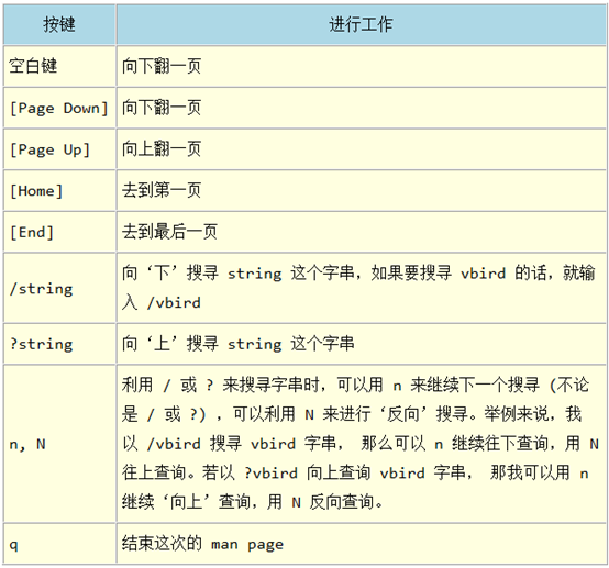 man一个命令之后会进入一个单独的帮助页面,成为man page,按q即可退出。