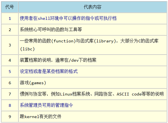 查看指定数字的命令,在man后面跟命令数字即可,如:
