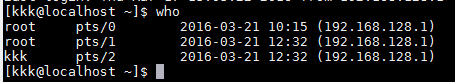 表示有两个客户端用户root在线,1个客户端kkk在线。