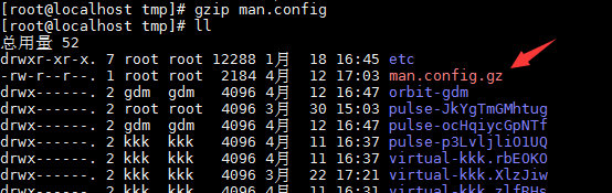其中a选项表示列出隐藏文件,默认不列出隐藏文件。