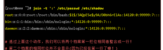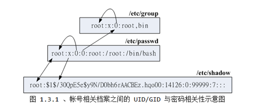 上面这四行共有三个冒号来隔开成四组,含义分别是: