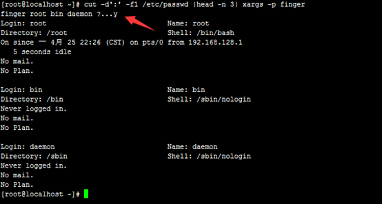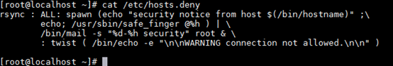 - spawn (echo "security notice from host $(/bin/hostname)" ; echo ; /usr/sbin/safe_finger @%h ) | /bin/mail -s "%d-%h security" root &: 表示用safe_finger抓取请求者信息,然后用管道命令将它们发送到root邮箱。mail 会将该消息以标题为 security 的字样寄给 root由于 spawn 只是中间的过程,所以还能够有后续的动作!
