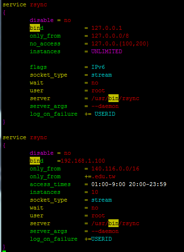 - twist ( /bin/echo -e "\n\nWARNING connection not allowed.\n\n" ): 这个动作会将 Warning 的字样传送到用户端主机的荧幕上! 然后将该连接中断。