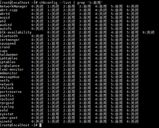不同的linux运行等级(0~6),如5是图形界面,3是文字界面,开机启动服务是不同的,可以用chkconfig命令查看或者设置。