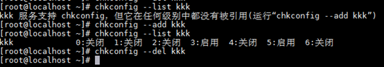 chkconfig –del kkk是将kkk移除chkconfig管理。