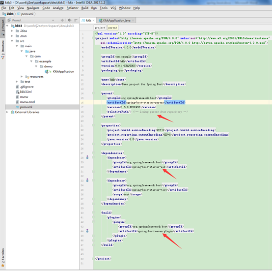 其中parent里定义了很多依赖的版本,继承它之后,以后的依赖都不用写版本号,全从parent继承,这样可以避免版本冲突,将个依赖的版本都交给了spring boot管理。