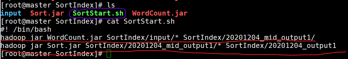 接下来要进行两次MapReduce操作,为执行方便,我写了个shell脚本,shell会按照脚本内容逐条运行指令,调试起来就很方便