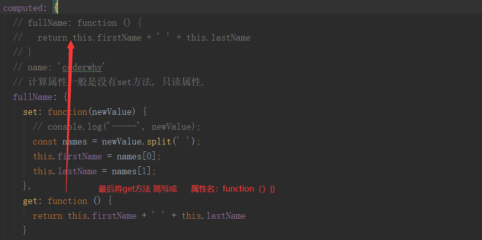 computed属性 里面的属性 都是有set和get方法 如下图