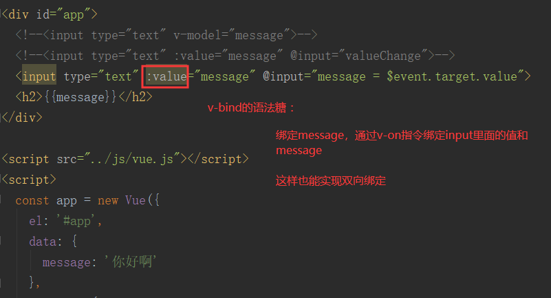 v-model的原理 它底层结合了 v-on和v-bind 指令