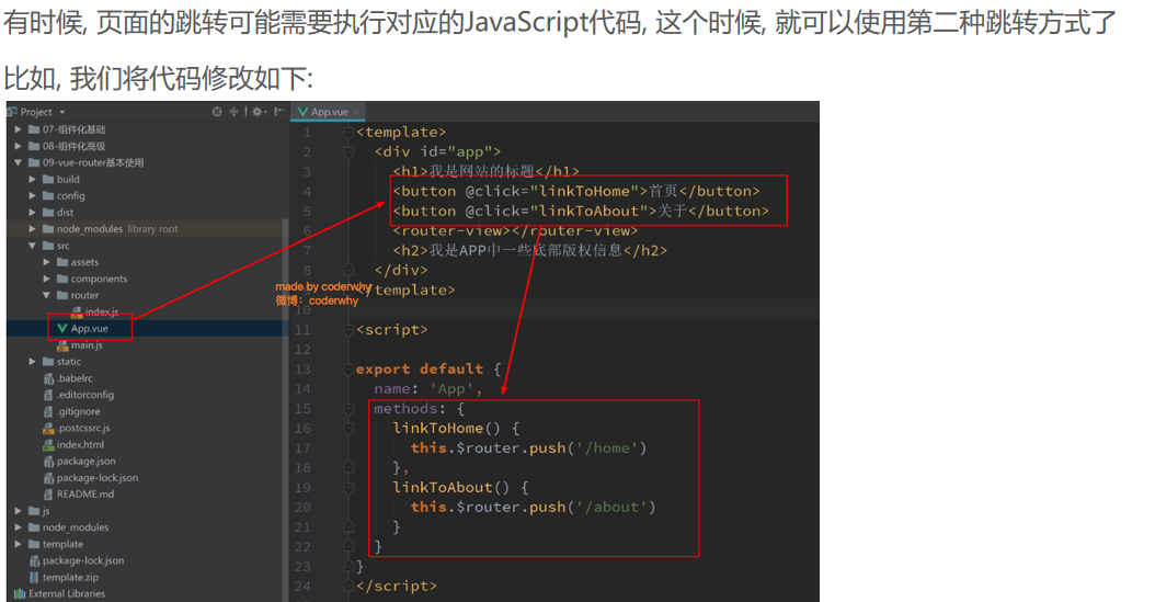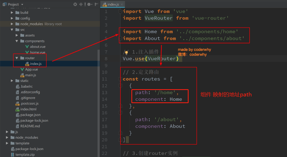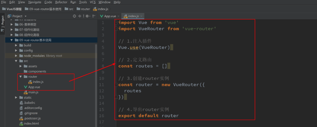 第二:在模块化的工程中使用它,因为是一个插件,所以可以通过Vue.use() 来安装路由功能