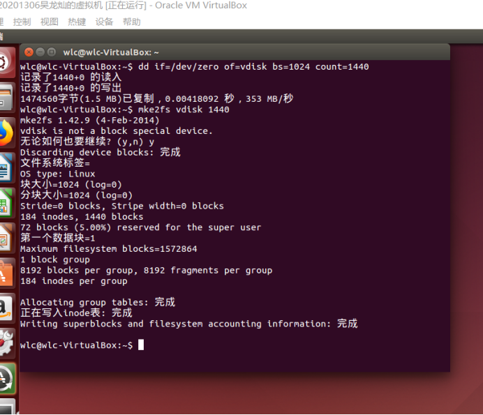 可在一个名为vidsk的虚拟磁盘文件上创建一个EXT2文件系统,有1440个大小为1KB的块
