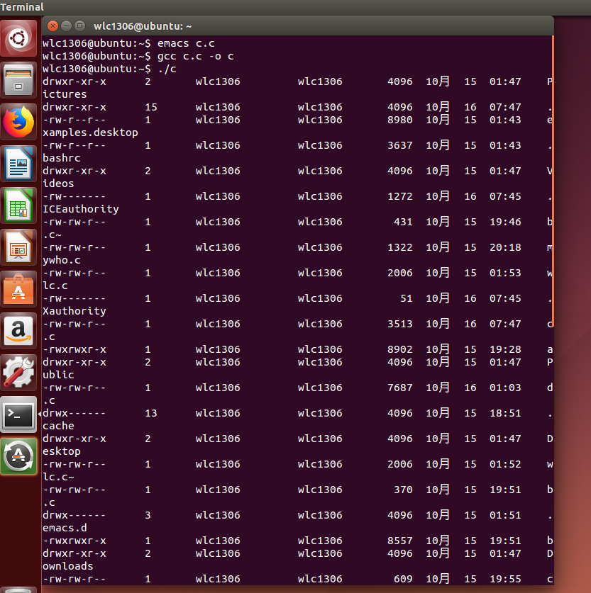 参考伪代码实现ls的功能,提交代码的编译,运行结果截图。