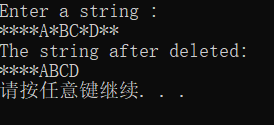 printf("The sting after deleted:\n");