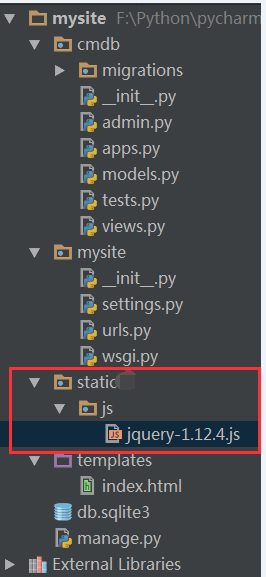 的页面。在django中,一般将静态文件放在static目录中。接下来,在mysite中新建个static目录。
