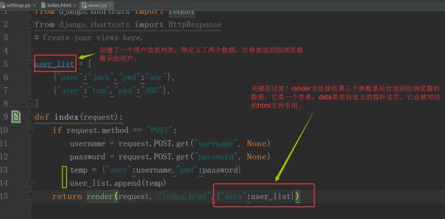 我们收到了用户的数据,但返回给用户的依然是个静态页面,通常我们会根据用户的数据,进行处理后在返回给用户。