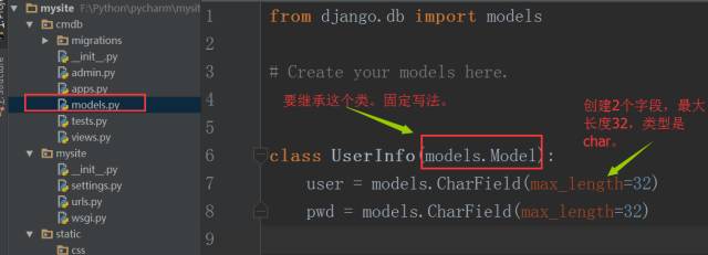 这样就创建了一个叫做cmdb的APP,django自动生成“cmdb”文件夹。