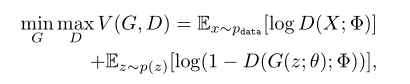 其中,p(z)作为噪声输入一般为标准正态分布,G和D分别为θ和φ参数化的神经网络。G和D都可以用反向传播来训练。在此框架下,生成器可以在达到全局均衡时恢复数据分布。