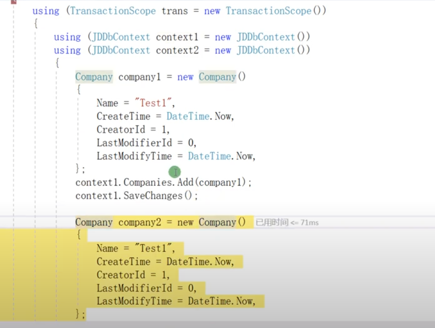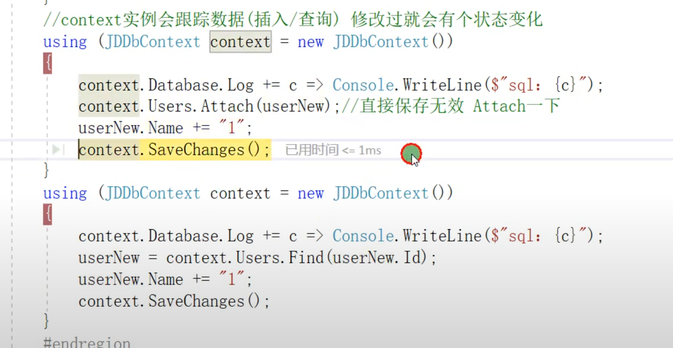 1.一次性保存全部变化,根据业务判断使用context是否要使用同一个,同一个context使用同一个事务![]()