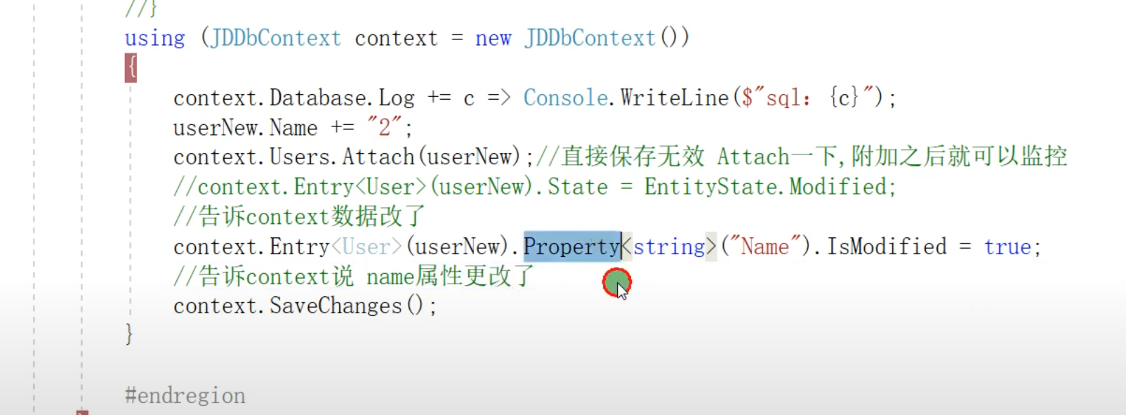在数据库修改的时候必须是增加数据跟踪,或者是先查询出来,因为在context上修改的时候需要知道主键,在不知道上下文是什么的情况下没法进行修改