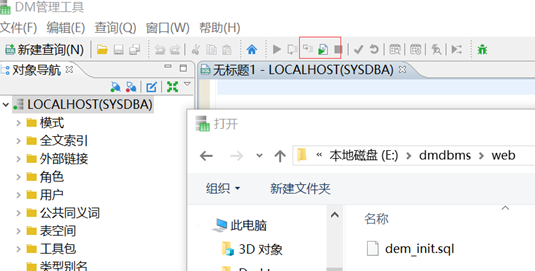 如果是在DM管理工具中,可以点击执行脚本按钮,执行dem_init.sql,无需设置编码。