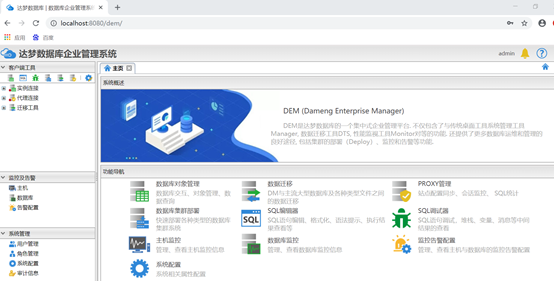 DEM(DM Enterprise Manager) 以 WEB 应用的方式提供数据库管理,监控和维护的功能,实现远程管理和监控数据库实例。