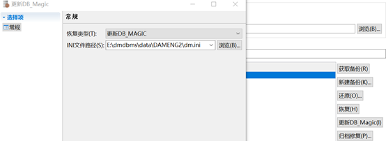 c、点击更新DM_MAGIC,选择还原库的dm.ini