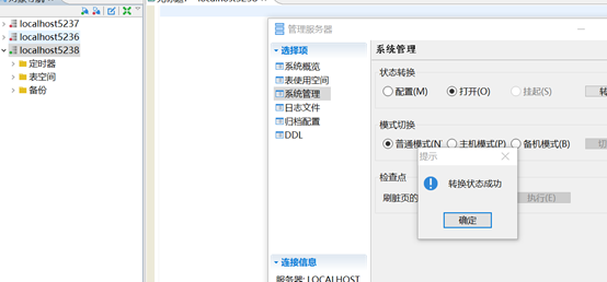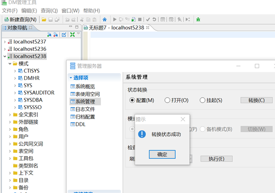 在测试的时候遇到一个坑,一开始用bak去恢复5237失败,报错“数据文件读写出错”,经检查发现是权限的问题,我5236是dmdba用户创建的,5237是root用户创建的,把5237库赋给dmdba用户和dminstall用户组即可。