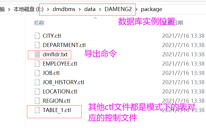 E:\dmdbms\data\DAMENG2\package 存放控制文件和脚本语句