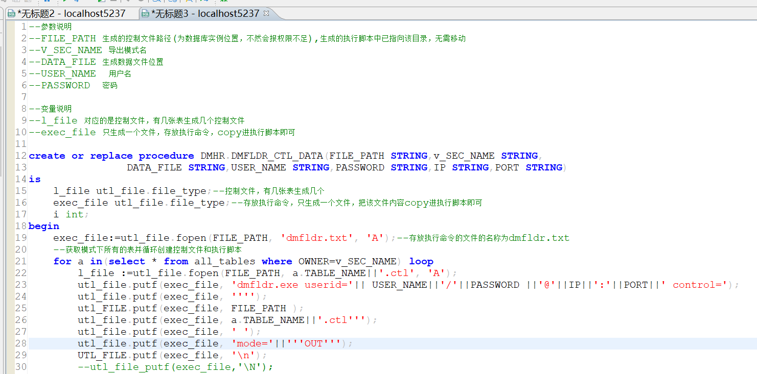 前言:在表数据量特别大的时候,需要使用到dmfldr快速导入导出数据,如果表的数量特别多,手动创建费时费力,所以现在提供一个用存储过程创建的方式。