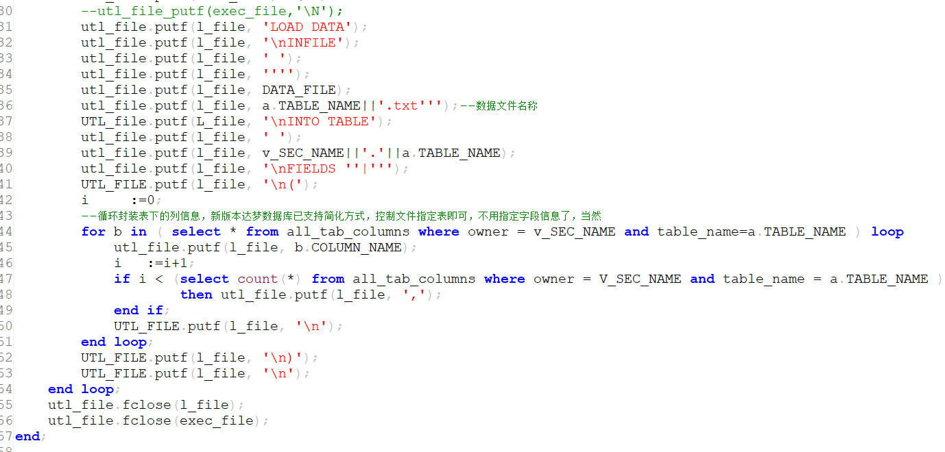 utl_file.putf(l_file, a.TABLE_NAME||'.txt''');--数据文件名称